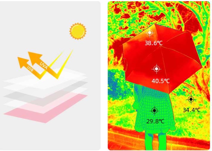 特殊な日傘生地により、強い日差しから肌を守り、快適な使用感を実現