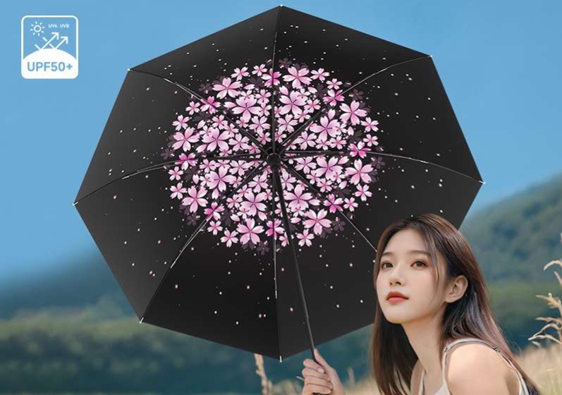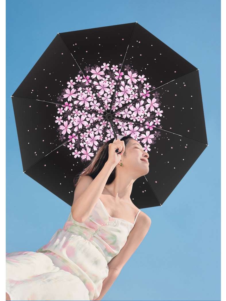 内側に華やかな桜模様が施された折りたたみ日傘。優れた紫外線カット機能を備え、日差しからしっかり守ります。晴れの日だけでなく、急な雨にも対応できる実用性が魅力。軽量設計で持ち運びもスムーズ。おしゃれで機能的な一本として、日常の必需品になること間違いなしです。